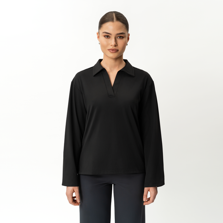 A versatile, relaxed-fit polo designed for effortless comfort at home or on the go. The open-collar polo neckline adds a polished touch, making it simple to dress up or down.