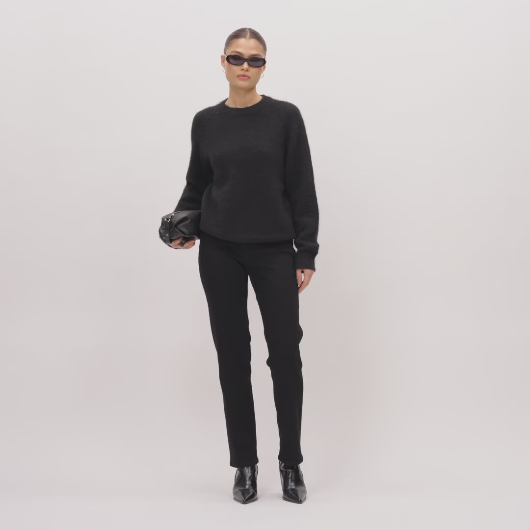 Experience the classic look of denim with the comfort of incredible stretch. Our high-waisted, straight-leg jeans are crafted from a proprietary denim blend that’s both very stretchy and thick, providing the feel of traditional denim with added flexibility. Versatile and perfect for everyday wear, these jeans are a must-have in your capsule wardrobe.