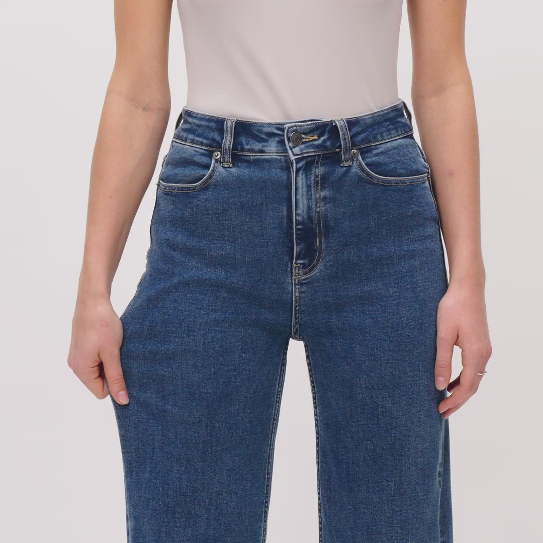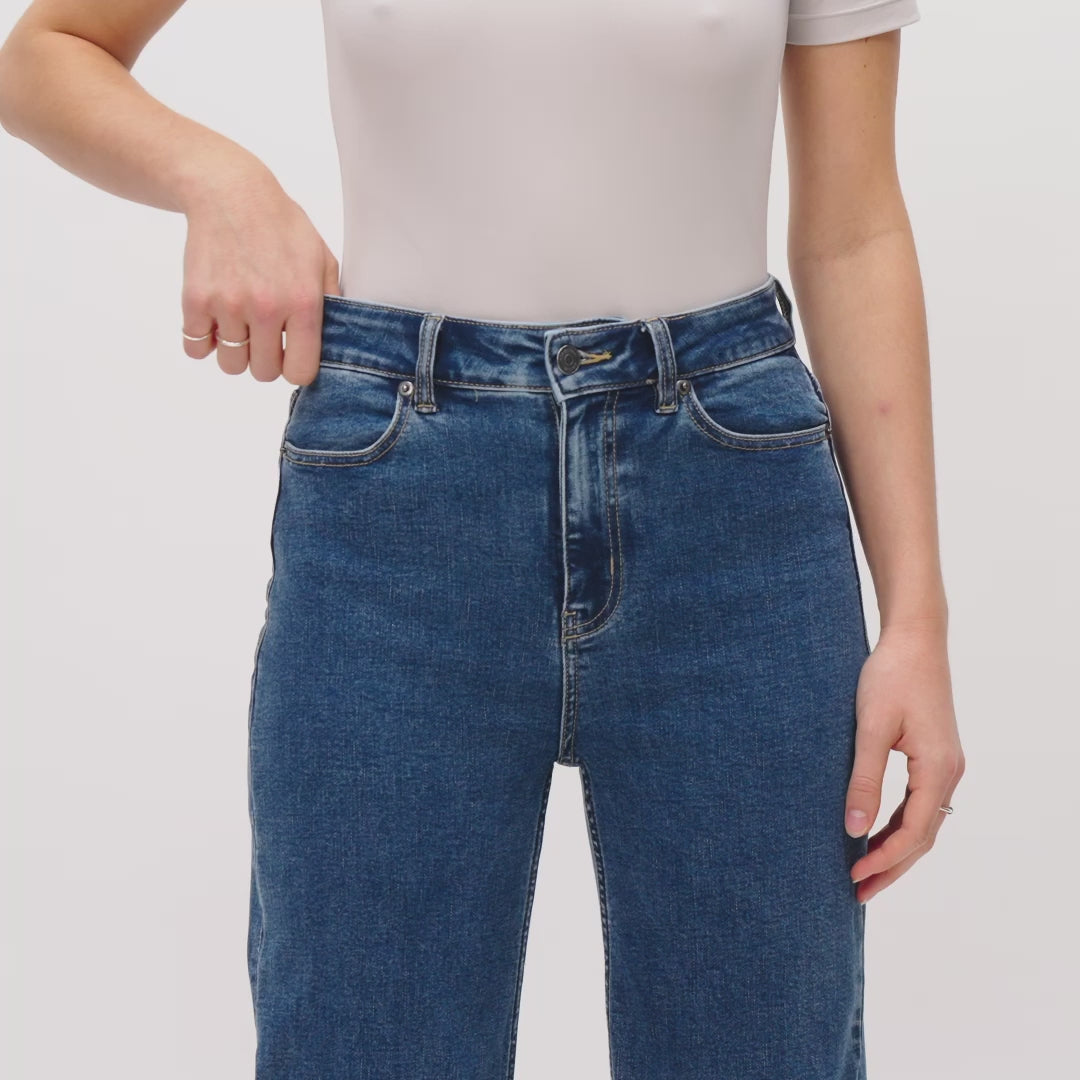 Experience the classic look of denim with the comfort of incredible stretch. Our high-waisted, relaxed wide-leg jeans are crafted from a proprietary denim blend that’s both very stretchy and thick, providing the feel of traditional denim with added flexibility. Versatile and perfect for everyday wear, these jeans are a must-have in your capsule wardrobe.
